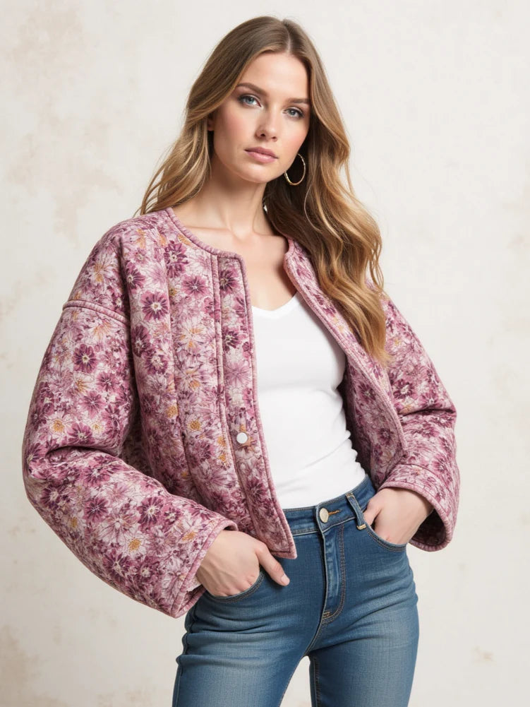 Amara – Lekka Pikowana Kurtka z Kwiatowym Wzorem na Bezproblemowy Wiosenny Look