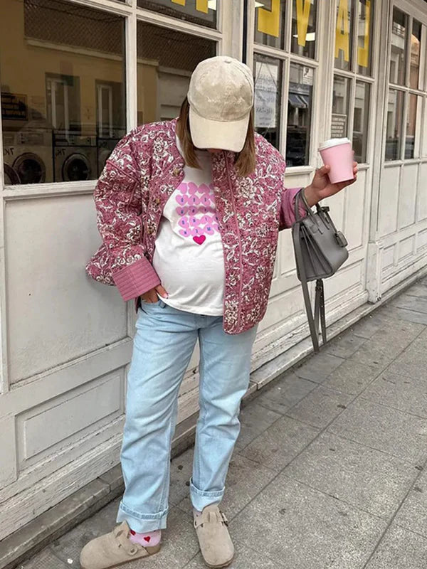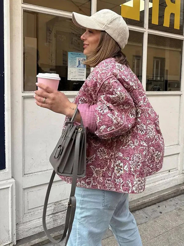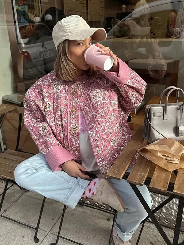 Z Amarą będziesz mieć idealną kurtkę na wiosnę i lato. Pikowany wzór i subtelny kwiatowy nadruk dają świeży, kobiecy wygląd, który łatwo zestawić z różnymi stylizacjami.