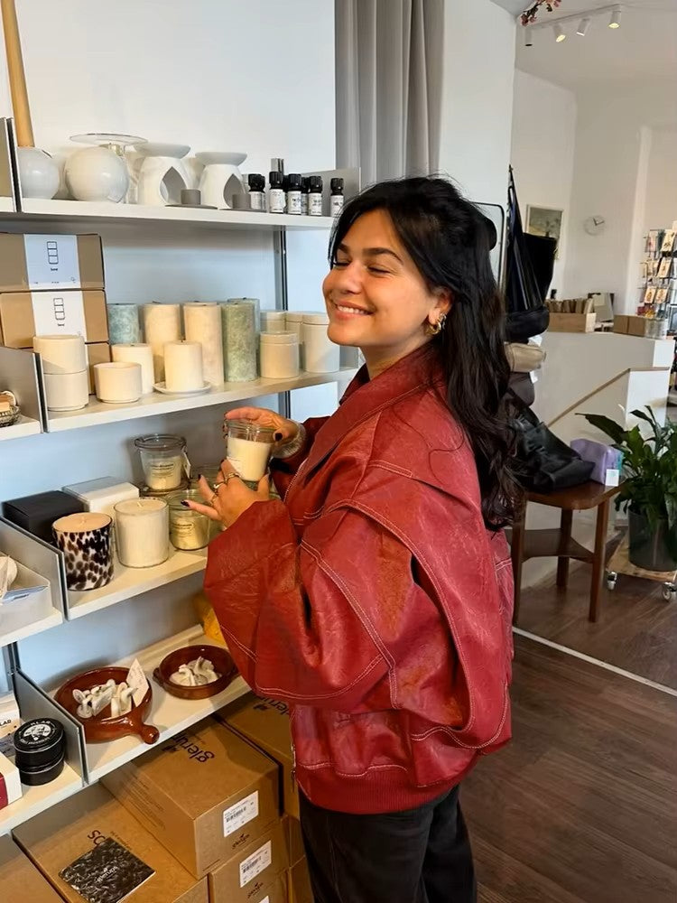 Niezależnie od tego, czy jesteś na swobodnej wycieczce po mieście, czy cieszysz się stylowym wieczornym spacerem, Lorine natychmiast podnosi Twój wygląd. Ta oversize'owa vintage kurtka oferuje luksusowe uczucie i luźne dopasowanie, które doskonale komponuje się z każdą stylizacją.