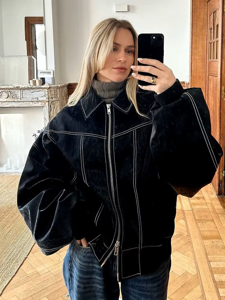 Z Lorine inwestujesz w kurtkę, która jest ponadczasowa, stylowa i wszechstronna. Oversize'owe dopasowanie i luksusowe wykończenie czynią ją niezbędną dla każdego miłośnika mody.
