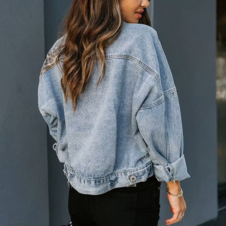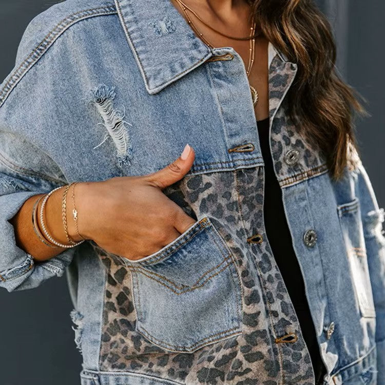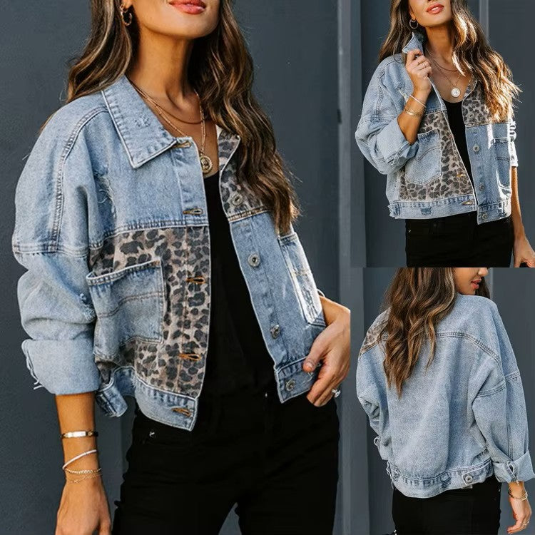 Maëlie – Krótka kurtka dżinsowa z nadrukiem w panterkę